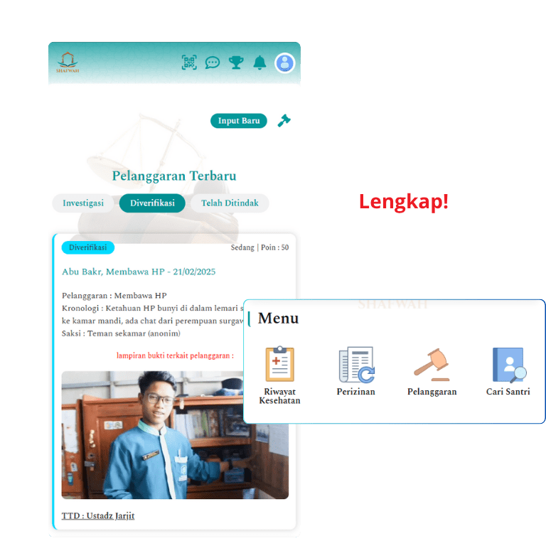 Hemat ratusan juta panggil programmer untuk digitalisasi lembaga antum, Aplikasi ini hanya 99K/bulan sudah merapikan semua laporan ; Tahfidz, Perizinan, Pelanggaran, Kesehatan, Akademik hingga Keuangan dll.