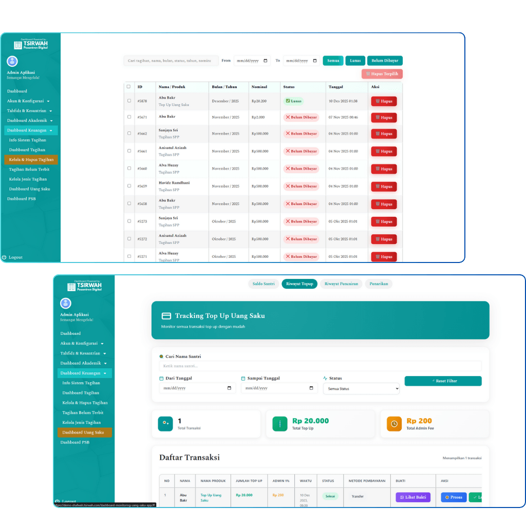 Wali santri melihat: Setoran anak, Kehadiran, Tagihan, dll langsung dari akun anaknya masing-masing.