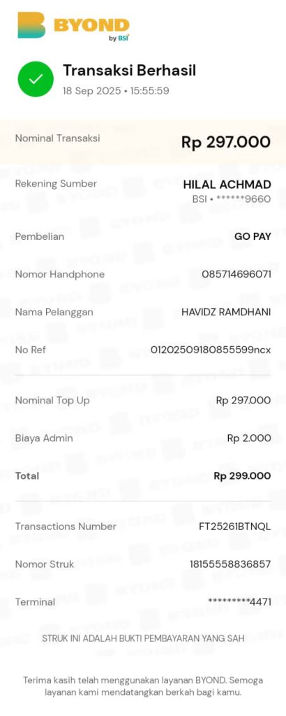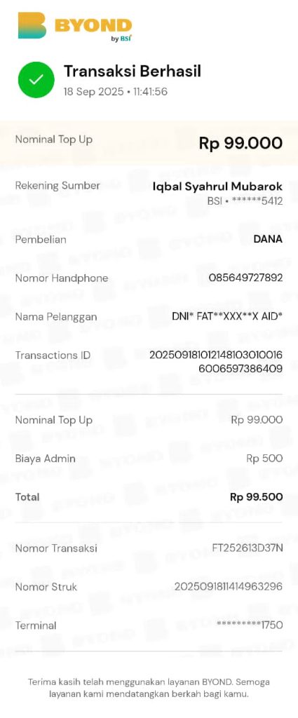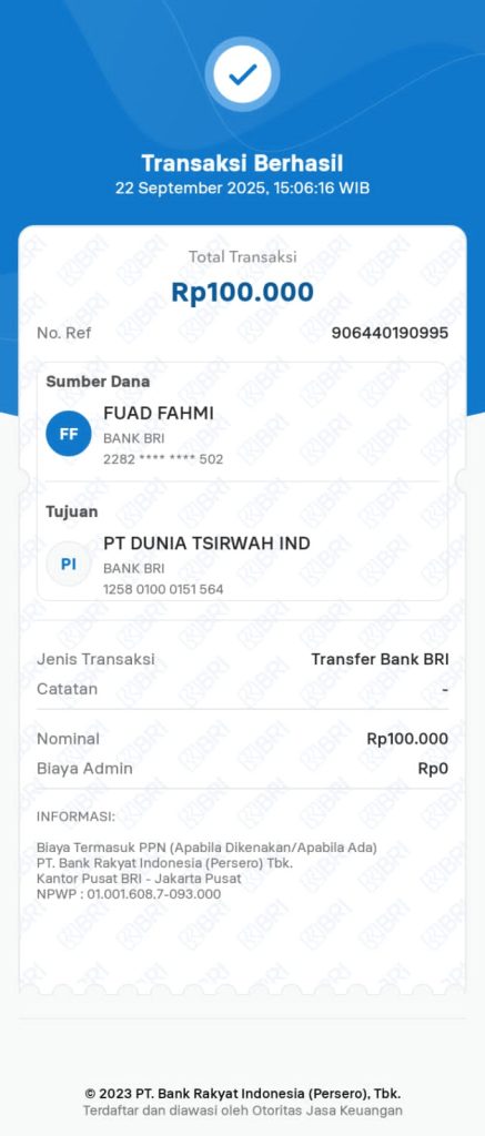 Bayar Tagihan: Askar Kauny Quran Tarmizi Djoesma Al Mubarok – Sep 2025